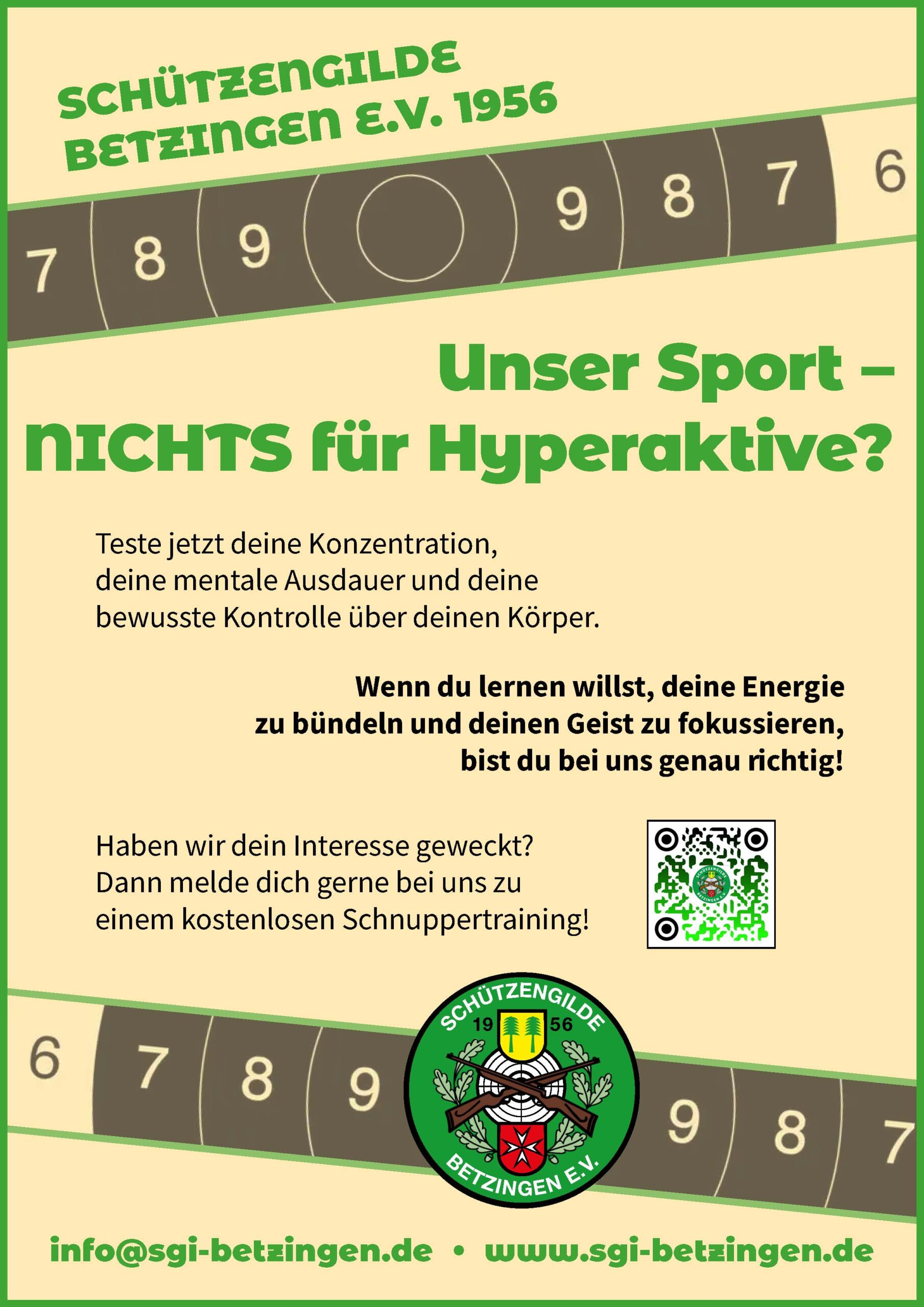 | Schießstand: Mi: 18:00 - 19:00 Uhr (Jugend) Mi: 19:00 - 20:30 Uhr LuPi, LG Sa: 14:00 - 17:00 Uhr So: 09:00 - 12:00 Uhr |