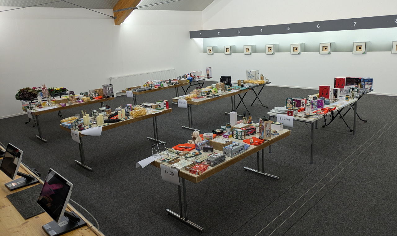 Sein Dank ging auch an alle Spender der 250 Tombolapreise und die Helfer um Jugendleiter Tim Kemmler, die diese am Nachmittag in der LG-Halle aufgestellt haben. Zum Schluss wünschte er allen ein frohes und besinnliches Weihnachtsfest, einen guten Rutsch ins Jahr 2026 und gab dann den Verkauf der Lose für die Tombola durch die anwesenden Jungschützen frei.
