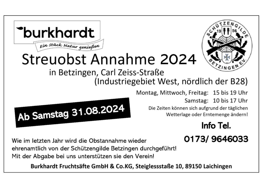 Hinweis Obstannahme 2024